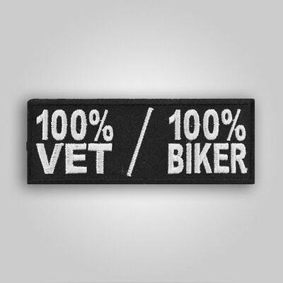 The 100% Vet/100% Biker Patch proudly displays your dual pride in military service and motorcycle culture, crafted for durability and style. Perfect for jackets and vests.