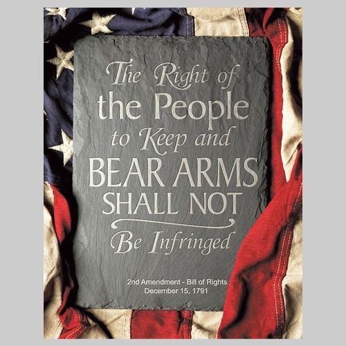 Honor one of America’s foundational freedoms with this powerful 2nd Amendment tin sign. Featuring a timeless quote etched in stone—“The Right of the People to Keep and Bear Arms Shall Not Be Infringed”—this design is framed by the folds of a weathered American flag, creating a striking visual tribute to the Bill of Rights. Below the inscription, the date “December 15, 1791” marks the ratification of the amendment, grounding the artwork in history and patriotism. Measuring 12.5 inches by 16 inches, this vertical portrait-style sign is made from durable tin and crafted in the U.S.A. With pre-drilled holes for easy hanging, it’s perfect for your home, office, gun room, or patriotic display space.